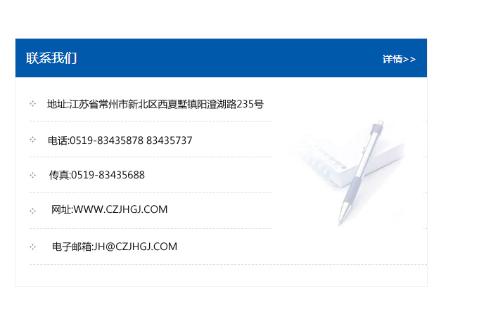 地址:常州市新北區友邦商務大廈1幢16、17層  電話:0519-85101652  傳真:0519-85112595  郵編:213022  網址:www_ahenghui_com.zyrjlblj.com  郵箱:xiajifengaa@163.com
